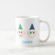 Les aides à la père Noël éclaireront votre journée ! Cette tasse super-amusante est parfaite pour toute la saison de Noël. Cinq têtes d'elfes (visages d'elfes) de style dessin animé entourent la tasse, avec une variété d'expressions allant du plaisir au sourire en passant par la surprise. Chaque elfe porte un casquette pointu avec une boule et une garniture moelleuse. Votre choix de nom personnalisé est sous les elfes des deux côtés de la tasse, en lettres bleu ciel. Fait un grand cadeau pour quiconque sur votre liste...ou vous-même !