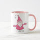 Mignonne tasse de Noël personnalisée avec gaieté gnome en vêtements roses.