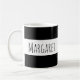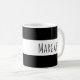 Cette tasse personnalisée est conçue pour apporter une touche d'individualité à votre quotidien. La caractéristique centrale du design est une large bande personnalisable qui entoure la tasse, prête à être ornée d'un nom, rendue dans une police sans-serif contemporaine et nette. La taille de la police fait une déclaration en gras, assurant que le texte est lisible de n'importe quelle pièce, ce qui en fait une pièce hors pair dans n'importe quel paramètre. La fonctionnalité de personnalisation de cette tasse en fait un cadeau parfait et réfléchi pour les amis, la famille ou les collègues pour n'importe quelle occasion, qu'il s'agisse d'anniversaires, de vacances ou d'étapes professionnelles. Il sert également d'ajout charmant aux ustensiles de cuisine, au bureau ou de garde pour des événements spéciaux.Dans un esprit d'expression personnelle, la tasse est conçue pour être offerte dans une variété de couleurs. Quelle que soit la teinte choisie, la conception maintiendra sa clarté et son impact distincts. Les couleurs sont sélectionnées pour compléter les lignes épurées du texte, assurant que chaque personnalisation se distingue avec élégance et simplicité. Cette tasse n'est pas seulement un objet de boisson ; c'est une déclaration personnelle et un rappel quotidien de l'individualité et de la sensibilité. C'est un mélange d'utilité et d'expression personnelle, ce qui en fait un élément essentiel pour toute personne qui valorise à la fois la pratique et une touche personnalisée dans sa vie quotidienne.