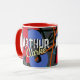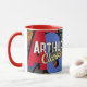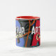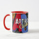 Stylish red-mug personnalisé avec son nom dans les styles de police cool, et avec de grandes lettres initiales rouges et bleues surdimensionnées avec l'ombre noire... design moderne monogrammed... bande dessinée inspiré arrière - plan abstrait.