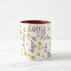 Répéter les coeurs faux en or mélangés avec votre nom choisi. Ce qui distingue ce coffeemug, c'est la touche personnalisée de votre nom, élégamment ajoutée à la surface blanche. Le nom répété (style de police brun rougeâtre) forme un motif harmonieux et gracieux, donnant au produit un charme unique. Un design typographique sympa et féminin pour offrir à toute femme spéciale.