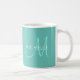 Monogramme Élégant Personnalisé Premier Modèle à la mode Turquoise Mug à café blanc.