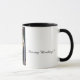 Tasse de café avec une image d'un singe mignon et plutôt drôle posant sur une barrière avec le slogan "non mon cirque, non mes singes" écrits des côtés de l'image.