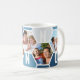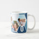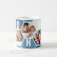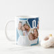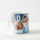Canette à café Honeypeb, personnalisée avec 5 de vos photos préférées et imprimée avec un nom de 5 lettres, comme NONNO. Le design comprend un collage photo en nid d'abeille dans une palette de couleurs bleu et gris. Si vous souhaitez modifier les couleurs, cliquez sur "customiser plus loin" et cliquez sur chaque hexagone que vous souhaitez modifier.