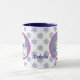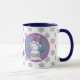 Voici une mignonne tasse de Noël personnalisée que les enfants et les adultes peuvent apprécier. Un côté présente une adorable image de bonhomme de neige de style nordique au centre d'un arrière - plan gris bleu encadré de rose lavande assorti. L'autre côté a un ours polaire sur la même bannière circulaire. Les images encadrées sont alors placées sur un arrière - plan de flocon bleu et blanc assorti, avec votre texte personnalisé en bleu marine entre les images.