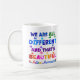 Citation inspirante de "Nous sommes tous différents et c'est magnifique" avec des puzzles d'autisme uniques, et des papillons colorés volant sur l'arrière - plan pour soutenir et défendre la Sensibilisation sur l'autisme.