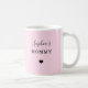 Cette simple et douce tasse rose pour la nouvelle mère présente un élégant texte et un script noir, avec un coeur mignon et le nom de votre enfant, plus le mot "maman". Un merveilleux souvenir pour sa première année en tant que nouvelle maman.
