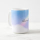 Une tasse à l'image arrière - plan douce et agréable. Le bleu pastel et les nuages roses avec un arc-en-ciel magique.