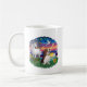 C'est une nuit magique quand un Beagle regarde vers le beau coucher de soleil et une curieuse montres de licorne tandis qu'une colombe de la paix vole haut dans le ciel étoilé cloué et un voilier se dirige vers la maison.