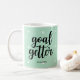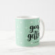 Cette tasse élégante présente un arrière - plan vert menthe tendance avec des pois blancs, et l'expression "but getter" dans la typographie moderne. Personnalisez avec votre nom.