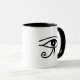 C'est un dans un ensemble de quatre tasses égyptiennes d'hiéroglyphe se composant d'une garde de temple, de l'oeil de Horus, du scarabée à ailes et de la reine de l'Egypte.