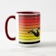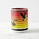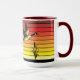 Oies volantes et plante de quenouille sur fond de coucher de soleil de style rétro. Vous pouvez personnaliser les couleurs avec ce modèle.