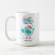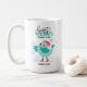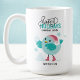 Célébrez la magie de l'hiver avec cette tasse de café de Noël personnalisée qui présente une illustration d'un oiseau bleu mignon portant un bonnet de ski rose et des bottes, faisant des boules de neige par un jour enneigé. La typographie élégante offre un salut joyeux « Joyuses Fêtes ». Personnalisez ce design en ajoutant un nom et un texte supplémentaire pour faire un cadeau unique pour les amateurs d'oiseaux et tous ceux qui aiment la saison hivernale.