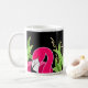 flamant rose Abstrait sur arrière - plan noir entouré de feuilles décoratifs vert clair