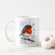 Cette tasse célèbre la grâce de la nature et la magie de la saison des neiges où l’oiseau rouge du robin occupe le devant de la scène, apportant de la chaleur à la scène glacée des flocons de neige.