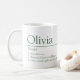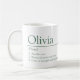 Simple personalized name definition text mug for the name Olivia meaning in a dictionary style design with three point meaning 1. An Olivia 2. Beacon of peace and hope 3. Giver of strength and friendship. Other name meanings and styles available or personalize this with your own name and what your name means to you, then add your own special photo to make this mug truly for Olivia! Designed by www.mylittleeden.com and namesense on Zazzle.