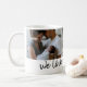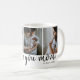 Une photo simple mais audacieuse tasse photo Fête des Mères avec trois photos et nous vous aimons maman texte modifiable.