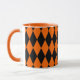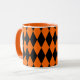 Mug Orange Black Harlequin Diamonds Checkers Design
