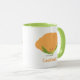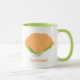 Mug avec un chou-fleur orange souriant. Le texte peut être customisé.