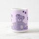 Tasse mignonne avec maman et bébé ours sur un arrière - plan violet pâle.