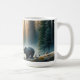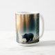 Cette image captivante présente un majestueux ours noir qui se fraye un chemin à travers un arbre tombé, encadré par une cathédrale de verdure verdoyante. Alors que la lumière dorée du lever du soleil pénètre dans la brume matinale, elle jette une lumière douce et éthérée qui donne vie à la forêt.