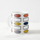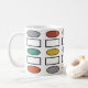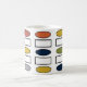 Cette tasse a un design moderne du milieu du siècle de rectangles et ovales répétitifs dans les couleurs rétro.