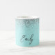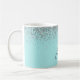 Bleu Aqua - Sarcelle Paillettes Brillantes Métal Brossé Monogramme Nom et Initiale Tasse à Café ou Mug. C'est le cadeau idéal pour un 16ème anniversaire, un mariage, une fête de mariage, un anniversaire, une baby shower ou une soirée entre filles pour quelqu'un qui aime le luxe glamour et les styles chics.