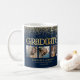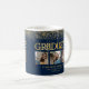Tasse de café moderne arc-en-ciel de remise de diplôme, comportant 3 photos, un texte à paillettes dorées qui dit 'diplômé', le nom du diplômé, le nom de l'école ou de l'université et l'année de remise de diplôme. Les styles, tailles et couleurs de police peuvent être modifiés en cliquant sur le lien Personnaliser davantage après la personnalisation.