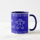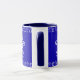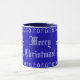 Blue and White Modern Christmas Tree and Gingerbread Homme Motif avec texte personnalisé Joyeux Noël en Élégant Script, vous pouvez modifier ou supprimer le texte, Hiver Saison Fête Café Mug pour les enfants de tous âges