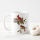 Cette oeuvre d'art étonnante présente une paire de cardinaux mâle et femelle perchée délicatement sur une branche d'amande sauvage fleurie. Capturée dans la Plate 159 de la série Birds of America de John James Audubon, cette impression vintage intemporelle présente le brillant plumage rouge du cardinal masculin avec son masque noir audacieux, tandis que la femelle plus subtilement colorée présente des marques rouges douces qui se fondent magnifiquement dans son environnement. L'un des oiseaux les plus aimés et les plus reconnaissables, le Cardinal du Nord est l'oiseau officiel de sept états de l'Est : l'Illinois, l'Indiana, l'Ohio, le Kentucky, la Caroline du Nord, la Virginie Occidentale et la Virginie. Abondants dans le sud-est, ces oiseaux chanteurs vibrants ont étendu leur aire de répartition vers le nord jusqu'au sud-est du Canada, offrant souvent des paysages hivernaux enneigés, avec leurs plumes crimson frappantes et leurs chants sifflants clairs. Ils sont également communs localement dans le désert du sud-ouest et ont été introduits à Hawaï, en Californie du Sud et aux Bermudes, où ils prospèrent. Les cardinaux sont souvent considérés comme des symboles d'espérance, de joie et de foi, surtout en période difficile. Le folklore américain nous dit que la présence d’un cardinal est un rappel de Dieu qu’Il est avec nous, qu’il veille sur nous, et qu’il y a une vie au-delà de ce monde dans le royaume des cieux. Ce symbolisme spirituel unique fait du cardinal un oiseau chéri et significatif pour beaucoup. Avec son mâle rouge vif et sa femelle gracieuse perchée au milieu de fleurs délicates, cette oeuvre d'art est un cadeau parfait pour les amateurs d'oiseaux, les observateurs d'oiseaux et les amateurs de nature. Présentée dans un décor mural ou partagée comme une carte postale soignée, cette impression vintage d'Audubon apporte une beauté intemporelle et un sentiment de paix à tout endroit.