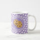 Deux délicieux biscuits de chips de chocolat font un café brisé design sur un arrière - plan de lavande pourpre tachetée blanche. Personnalisez deux lignes de texte et votre nom ou slogan customisé apparaîtra de chaque côté, en courbant autour de l'image des biscuits.