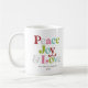 Cette tasse à café familiale de Noël colorée, calme, joie et amour rétro est parfaite pour un cadeau de vacances. Le design simple présente une typographie mignonne et amusante avec alternance de lettres de couleur rouge, rose vif, vert pomme, turquoise et gris.