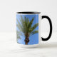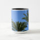 Photo du sommet de trois palmiers contre le ciel bleu sur une tasse à café.