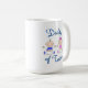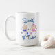 Tasse à café mignonne avec "Daddy of Twins" en bleu et mignon bébé garçon et fille en bleu et rose.