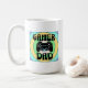 Papa joueur rétro avec casque et manette pour le père joueur.