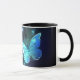 Fabuleux, brillant, bleu et jaune, papillon de nuit sur arrière - plan foncé.