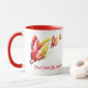 Cette tasse lumineuse et colorée a un papillon rouge et jaune qui se dirige vers le ciel contre un arrière - plan blanc, et un dicton motivant : Ne vole pas, sonnez !