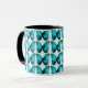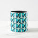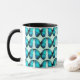 Cette tasse absolument belle est ornée par des rangées des papillons iridescents de bleu/turquoise.