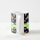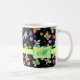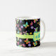 Prenez un café ou votre boisson préférée dans cette tasse personnalisée ou offrez-en un cadeau. De beaux papillons tourbillonnants volent vertigineusement sur cette tasse colorée personnalisée avec votre monogramme initial. Si vous préférez votre nom au lieu de l'initiale, supprimez l'emblème et changez le monogramme en votre nom ou autre mot sur le bar turquoise turquoise avec un emblème turquoise.Les belles couleurs de lavande, rose fushia, bleu turquoise, orange et jaune créent une grande palette de couleurs qui apparaissent sur un arrière - plan noir. Les éléments de conception d'icônes à motifs comprennent également des fleurs jaunes, turquoise, lavande et rose fuchsia et des cercles fantaisistes. Customisez pour vous-même ou pour un cadeau. Les papillons sont toujours populaires et bonne chance ainsi que tendance, contemporain et élégant avec grand charme. Entièrement personnalisable pour ajouter votre monogramme ou un nom ou un autre mot spécial. Coordonner avec d'autres produits de la même couleur dans ce magasin. Plusieurs choix de couleurs pour les couleurs arrière - plans sont également disponibles dans ce magasin.
