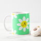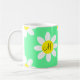 Cette adorable tasse présente des fleurs blanches avec un arrière - plan vert clair apaisant. Des initiales uniques pour la personnalisation peuvent être placées au centre d'une fleur à l'avant et à l'arrière. C'est une tasse sucrée et heureuse à utiliser pour les boissons.