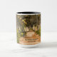 Photographie de voyage de parc de Forsyth dans la savane, la Géorgie (GA), Etats-Unis montrant des réverbères rougeoyants et un chemin de saleté sous un auvent des membres de chêne noueux couverts de la mousse espagnole. Ce du sud, image de souvenir de voyage a été numériquement augmenté pour lui donner un regard painterly.
