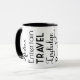 Trinquez à la retraite avec cette tasse d'art graphique audacieuse avec des mots inspirants comme Relaxer, Divertir, Voyager et Se faire plaisir dans un mélange frappant de script et de typographie moderne sur fond blanc avec un intérieur noir élégant. Le collage typographique dynamique célèbre toutes les aventures à venir. Un cadeau de retraite parfait pour un collègue, un patron ou un ami qui entame son prochain chapitre.