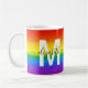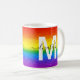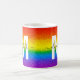 Prenez votre café du matin dans le style avec cette parties scintillant personnalisée et glam tasse de café. Le design chic rayé arc-en-ciel comprend des nuances de rouge, orange, jaune, vert, bleu et violet parties scintillant avec un monogramme initial en blanc et nom dans le script noir moderne pour vous personnaliser. Fabriqué juste pour vous par ExtremeTees !