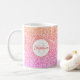 Cette tasse personnalisée présente une conception de parties scintillant fausse avec un monogramme rond. Personnalisez-le avec un nom et une initiale.