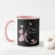 Cette jolie tasse de la Saint Valentin a un beau style rose faux coeur parties scintillant tourbillonnant contre un arrière - plan noir dramatique. L'image est imprimée deux fois sur la tasse, avec des champs de texte pour vous permettre de customiser au centre. Il montre une salutation de Saint-Valentin, mais vous pouvez facilement le changer à tout ce que vous voulez. *Remarque : l'image est imprimée et ne contient aucune parties scintillant réelle.