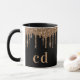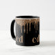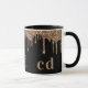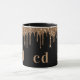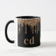 Un arrière - plan noir classique avec des gouttes de parties scintillant en faux or, la peinture goutte à goutte. Personnalisez et ajoutez un nom et des initiales monographiques. Le nom est écrit avec des lettres en bloc dorées et modernes. Lettres blanches et dorées.