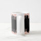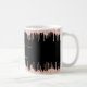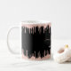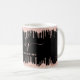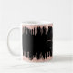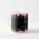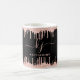 Girly, Elegant, Sylish Blush Rose Gold Parties scintillant Drips 2 Monogramme Script personnalisé nom monogrammed mug. Doté d'un cadre de goutte de parties scintillant en or rose rose, d'une grande police de script monogramme à double main avec swashes (initiales de grande taille) et d'un nom de police de type serif en rose sur arrière - plan noir. Facile à personnaliser. Grand cadeau féminin féminin pour petite amie, mère, anniversaire, mariage, douceur de 16 anniversaire fête nuptiale, et baby shower, affaires, bureau à domicile, travail professionnel et pour toute personne qui aime des choses brillantes assez glamourous.