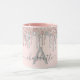 Une tasse monogrammée fillette et tendance. Une arrière - plan rose vif féminine décorée d'or rose et de parties scintillant faux argent. Personnalisez et ajoutez un nom et une lettre monogramme. Lettres de couleur grise. Le nom est écrit avec un script de style moderne écrit à la main avec des swashes. Pour que les swashes ne suppriment que le nom de l'échantillon, laissez les espaces ou émoticônes devant et après le nom.