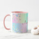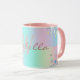 Unicorn Holographic Parties scintillant mug - Un mug à la mode aux couleurs étincelantes avec mélange de turquoise, rose et mauve et parties scintillant jaune clair. Vous pouvez personnaliser cette tasse en ajoutant votre nom et vos initiales.
