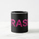 Fun tasse à café pour les "filles de la campagne" qui aiment vivre bruyamment et fantaisie! Célébrez cette ordure blanche / Trailer avec du texte "poubelle" dans l'air de la parties scintillant rose chaud bouillante sur arrière - plan noir,